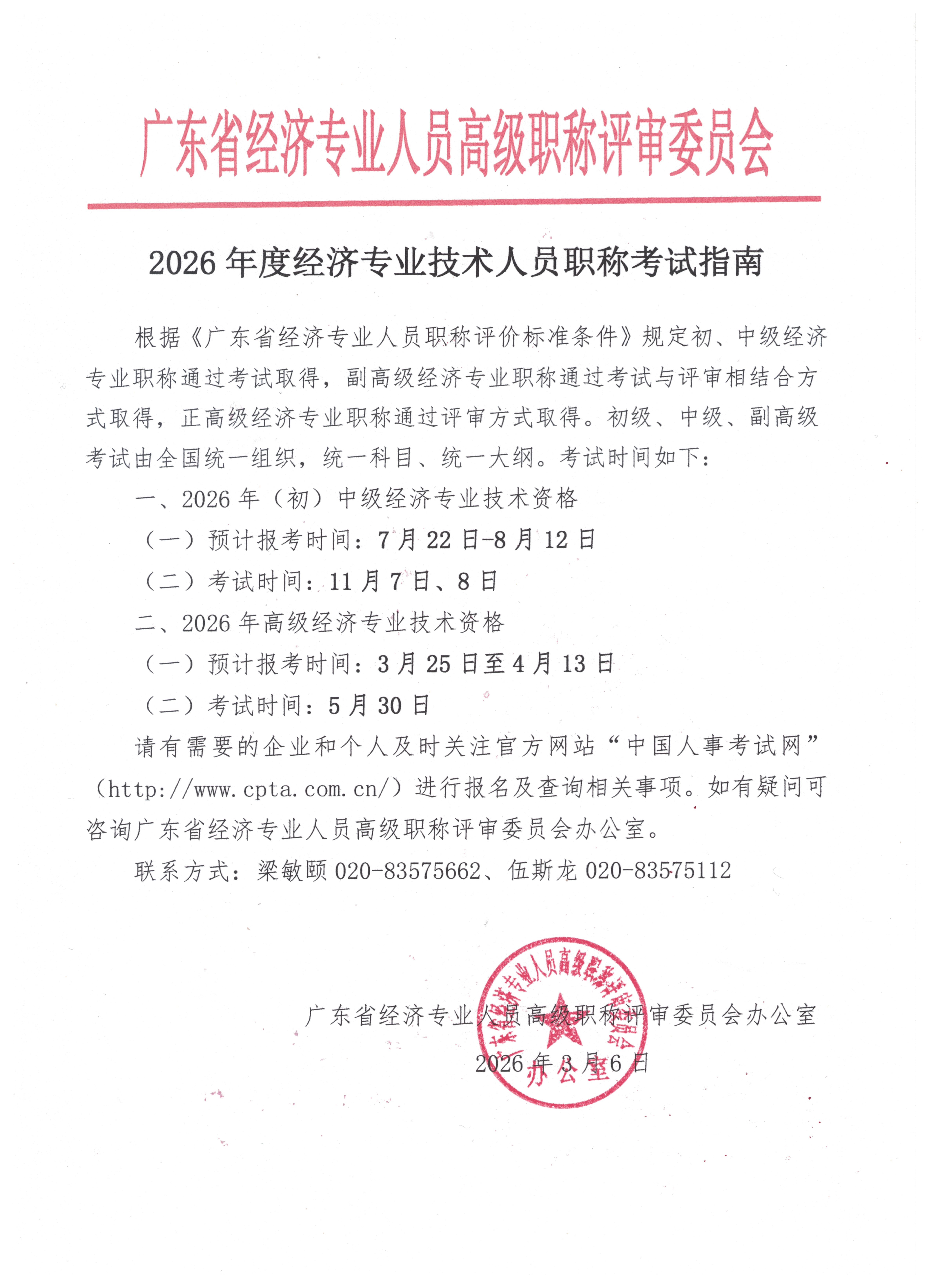 广东省2026年高级经济师考试报名时间和考试时间