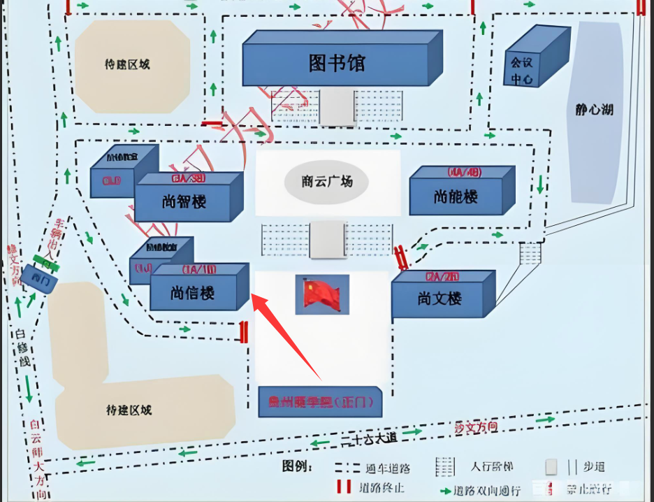 (三)答辩人员结合自己的答辩顺序,提前自行到达答辩场所。开车前往的须从贵州商学院南大门进入学校,一人仅限一辆车,并在规定区域停放。